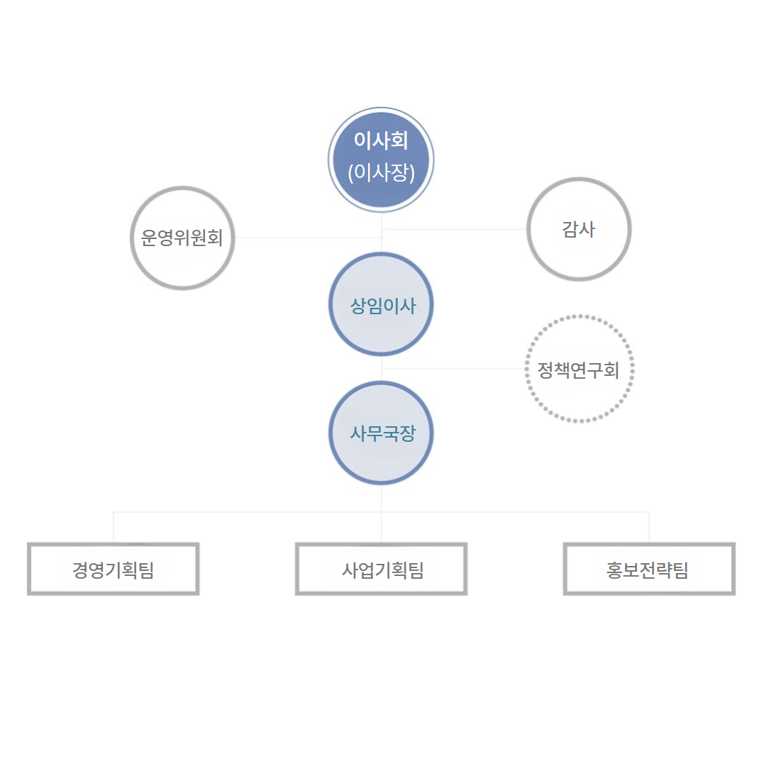 | 경영기획팀 | 경영기획팀 총괄, 경영기획, 자산운용, 규정 운영 및 관리, 인사, 예결산, 경영공시 |