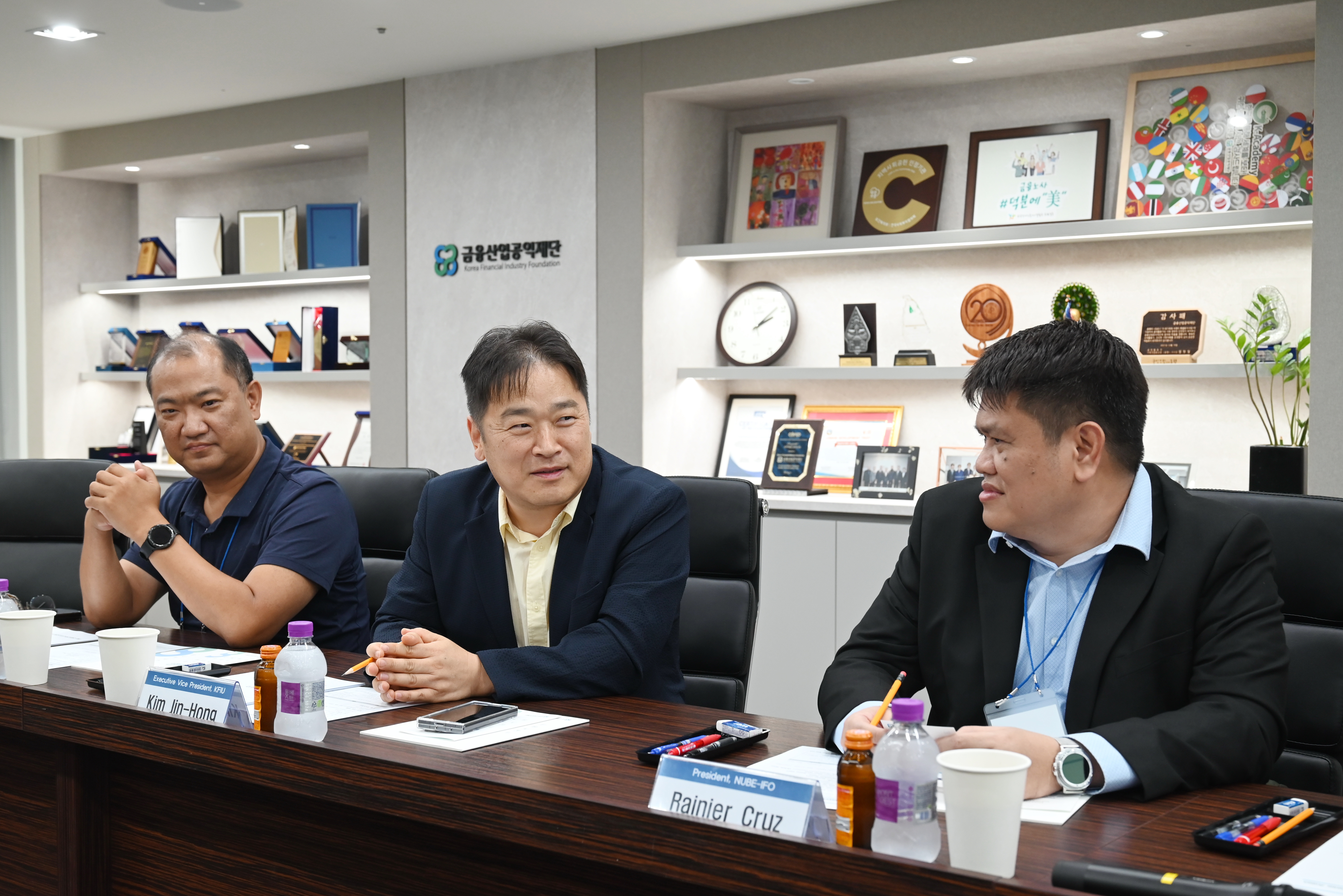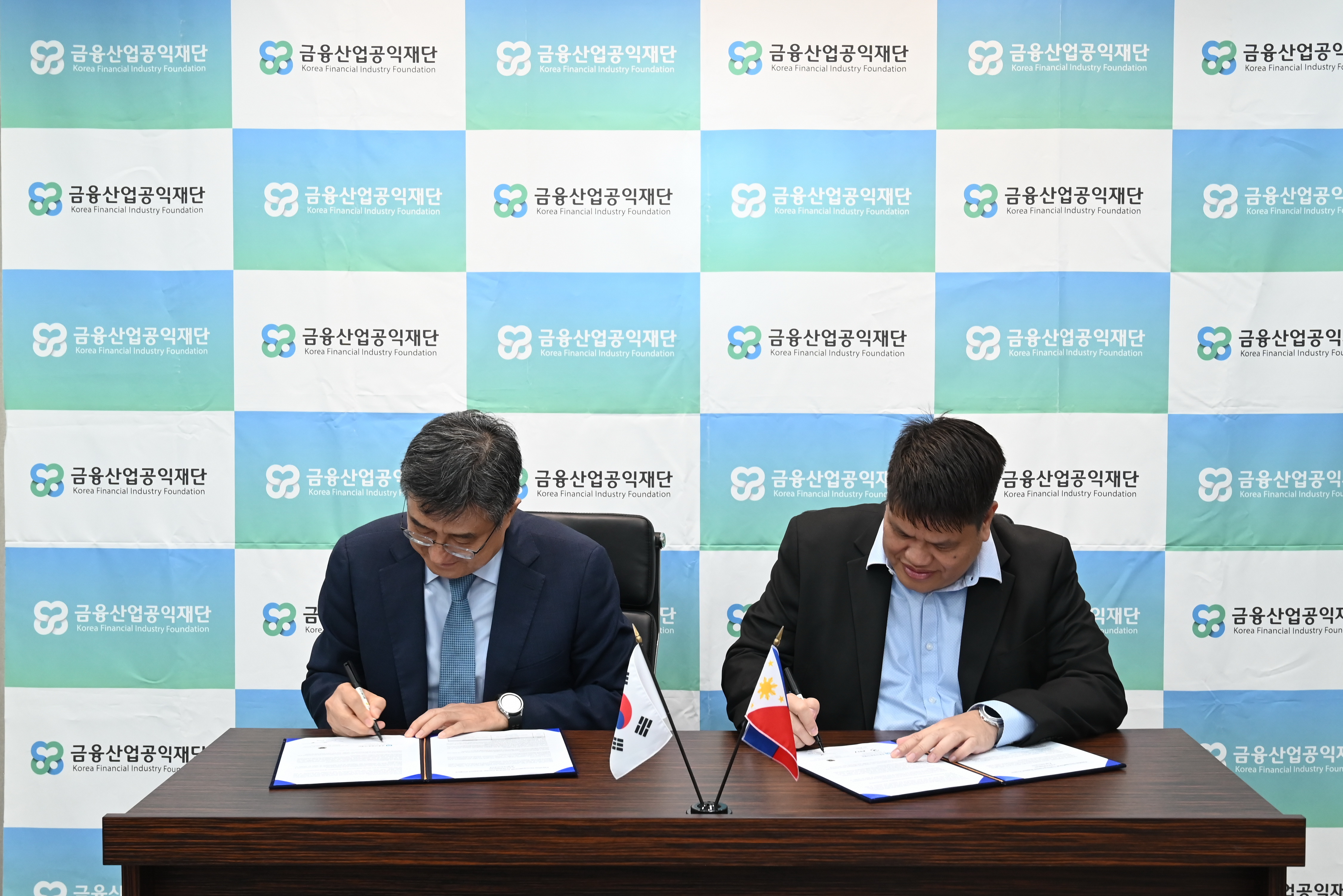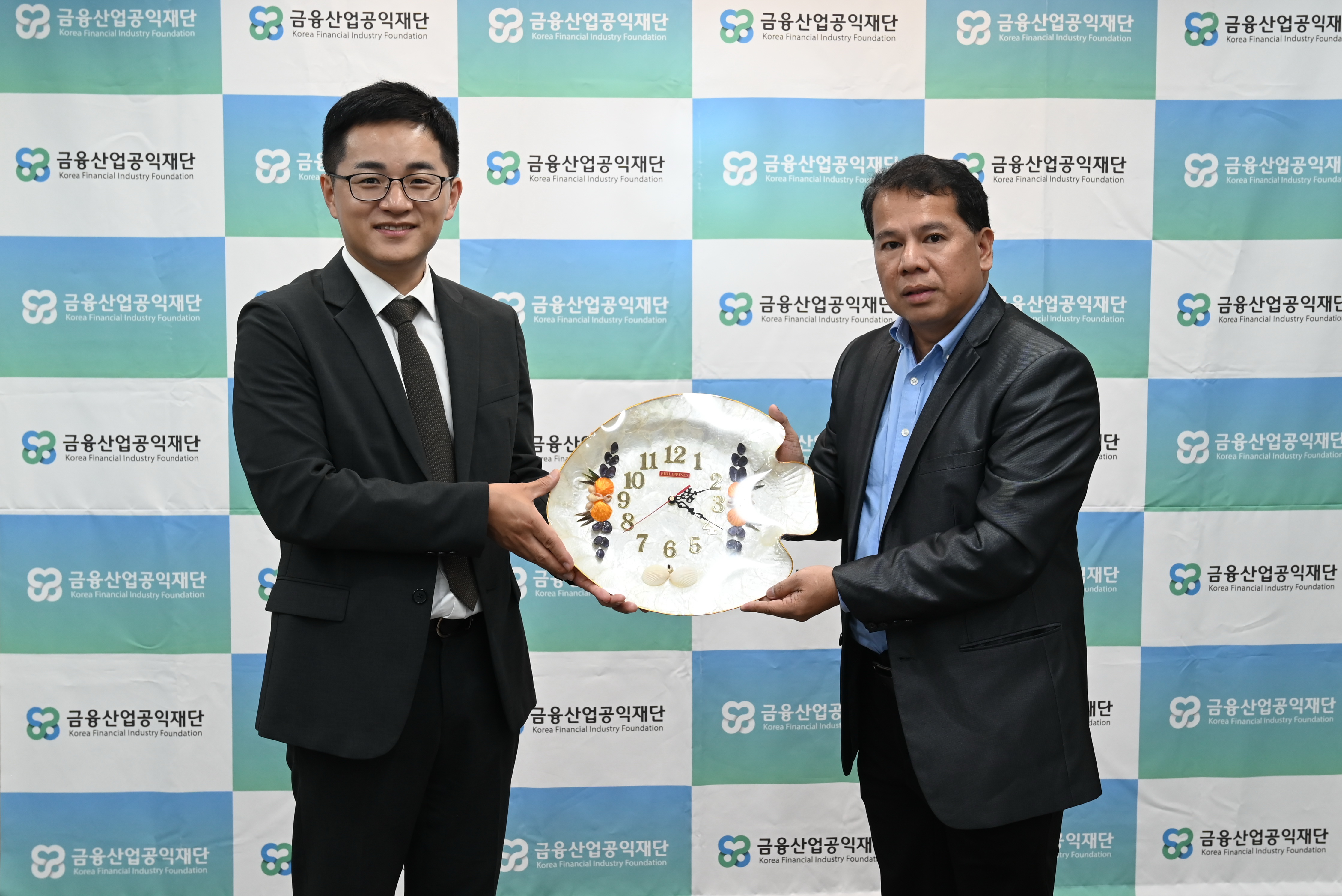 이날 행사는 주완 재단 이사장과 레이니어 크루즈 필리핀 금융노조 위원장