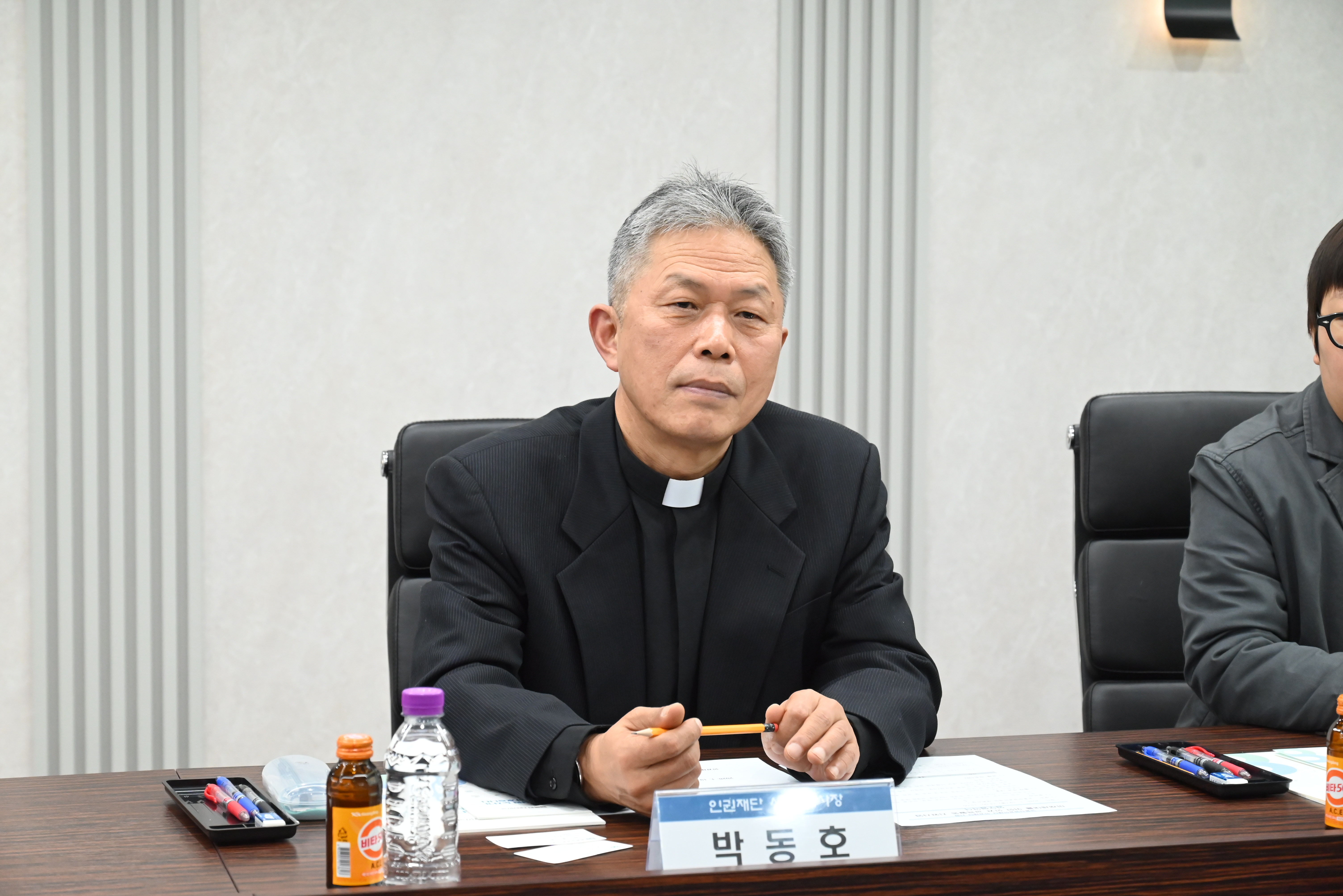 이날 행사에는 주완 재단 이사장과 박동호 인권재단 사람 대표 등이 참석하였다.